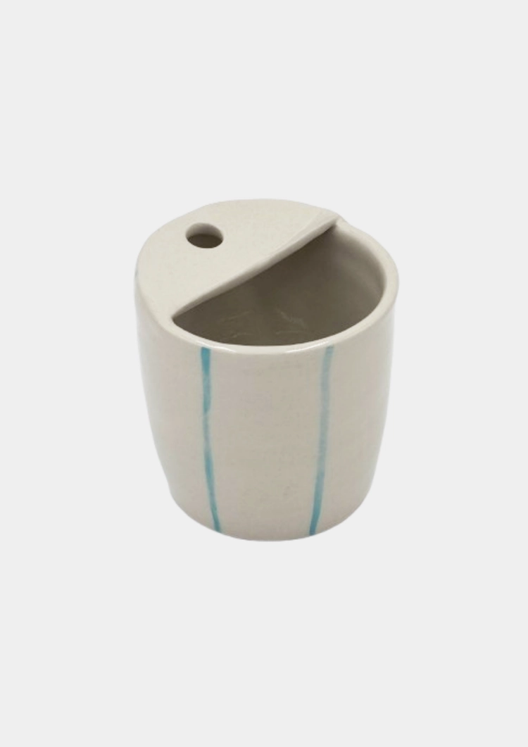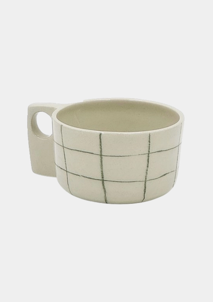 올리브 컬러의 크레용 격자 무늬 세라믹 머그
