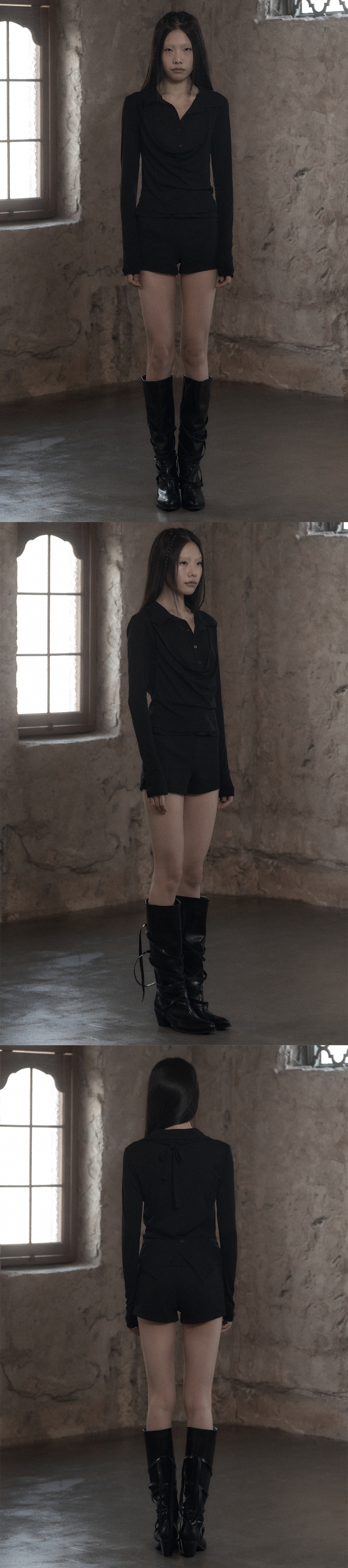 - 홀터넥 형태로 기장 조절 가능
