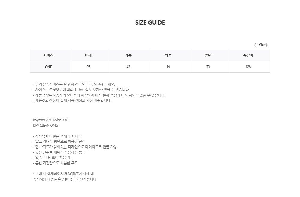 어깨 35 가슴 43 밑단 73 암홀 19 총장 128