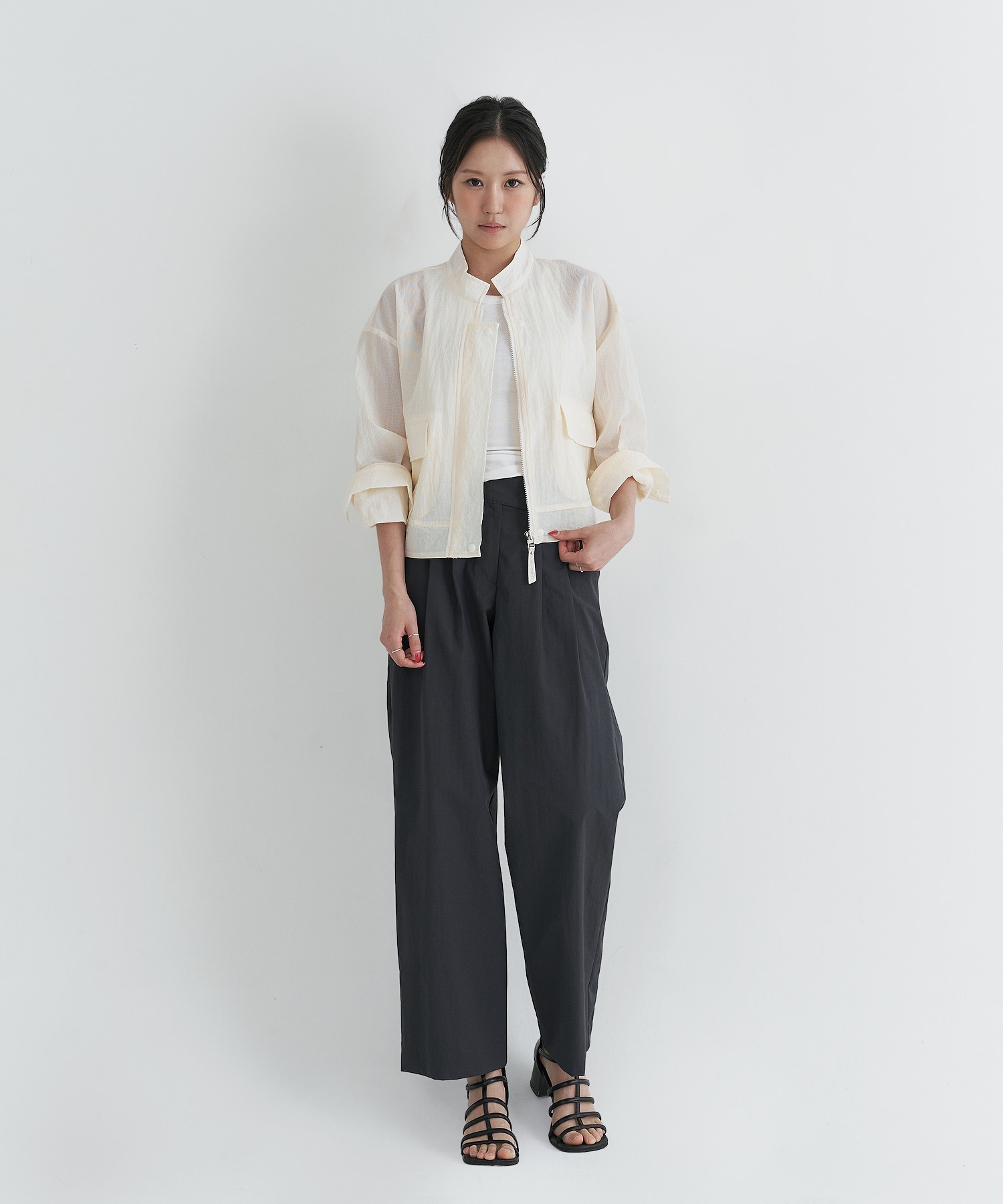 바스락 거리는 소재로 몸에 달라붙지 않아 체형 커버에 좋은 원단입니다.