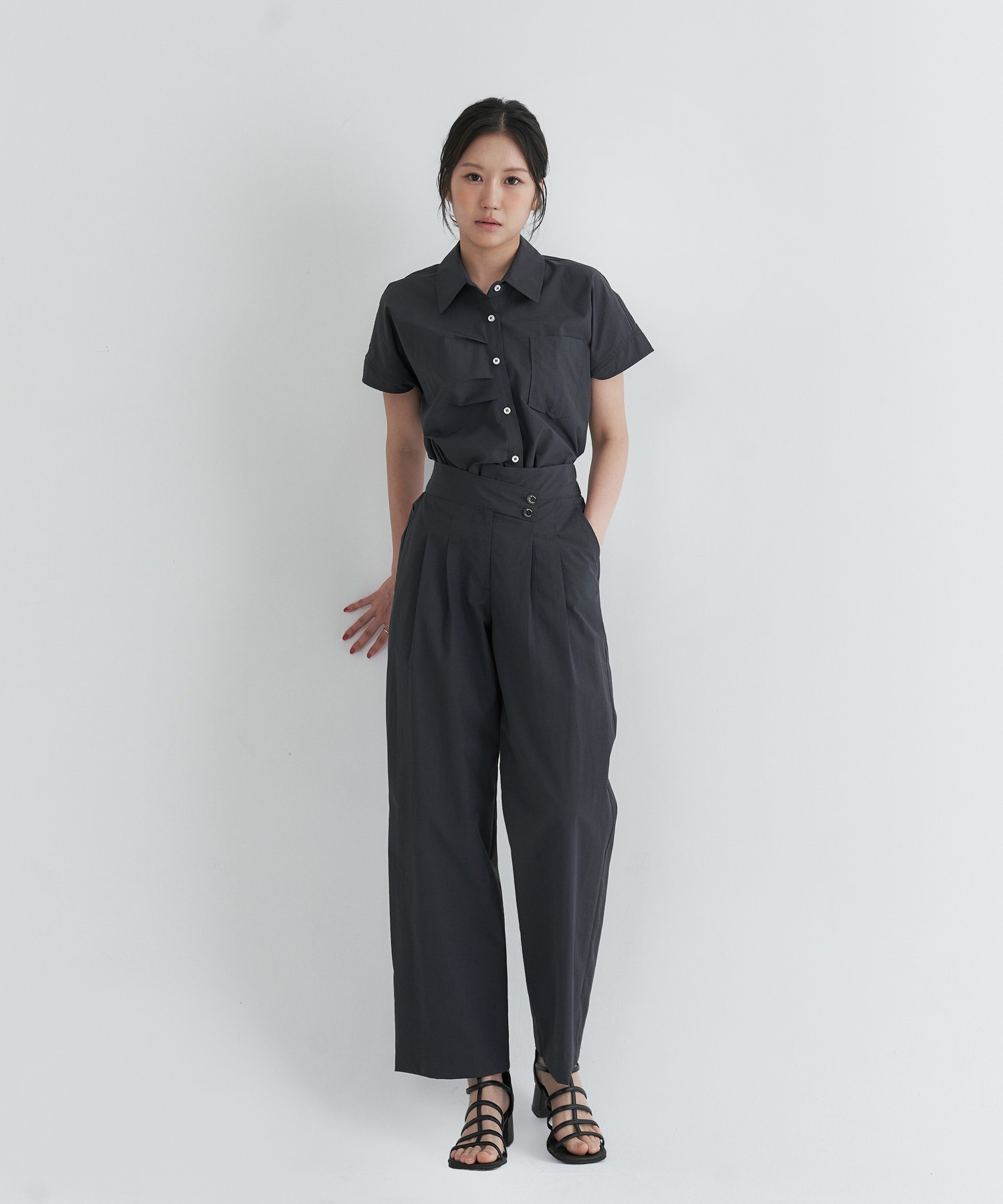 허리 부분의 여밈 디테일이 돋보이도록 상의를 넣어서 연출해주시면 플레이오 만의 유니크한 분위기를 느끼실 수 있습니다.