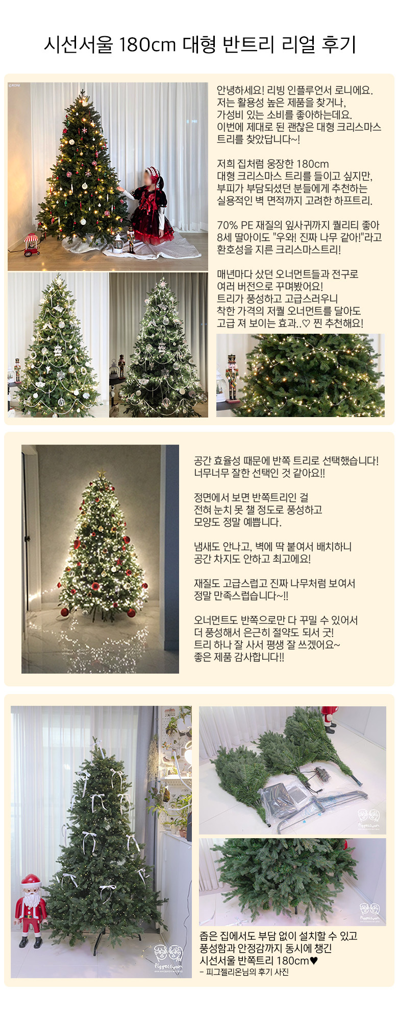 [피그젤리온 공동구매] 크리스마스 트리 하프트리 대형 180cm 반트리 화이트 리본 증정